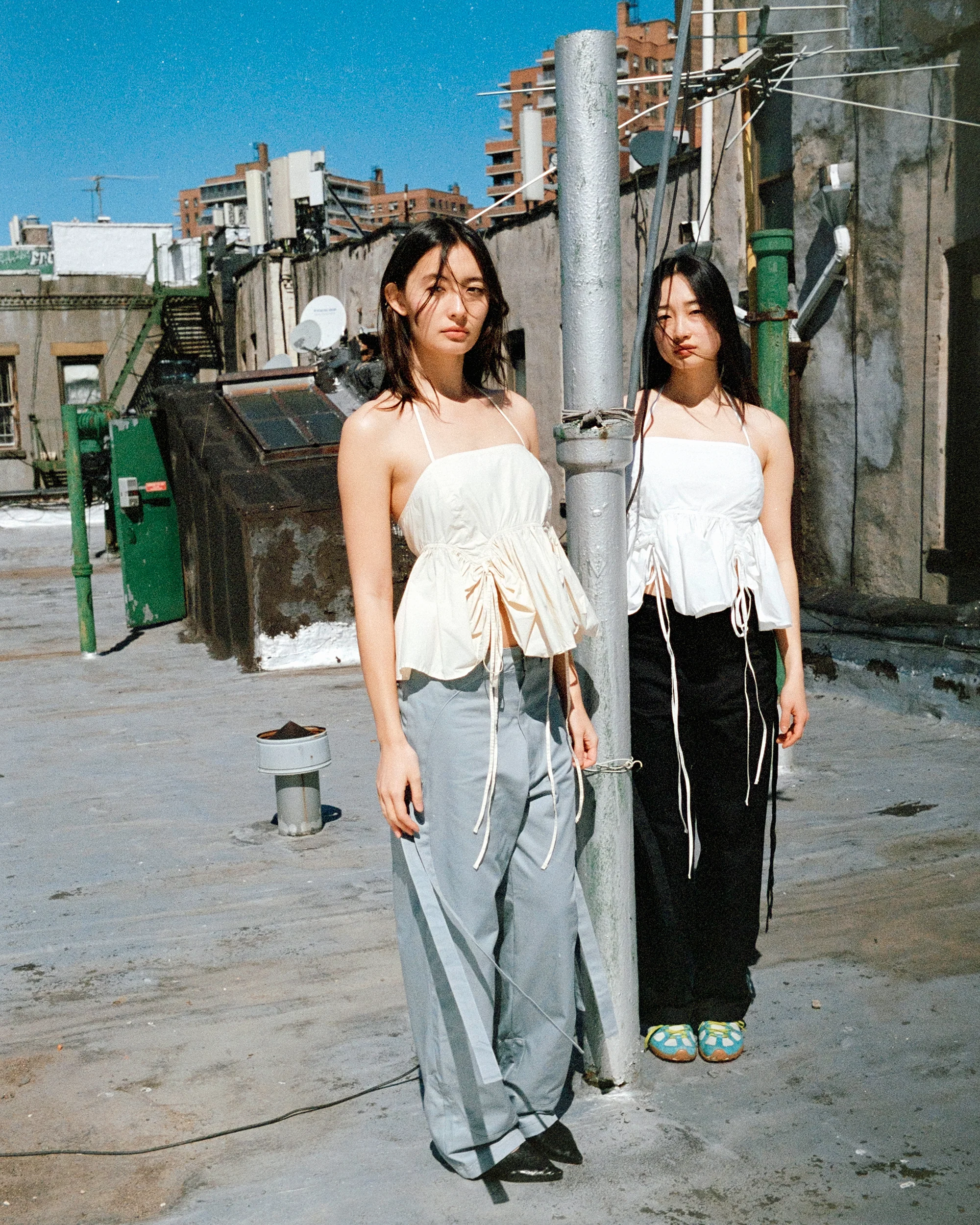 A roomy, straight leg, structured cotton twill pant brimming with Ella Mae details. They feature our signature arch-shaped yoke, flowing into two extended straps on either side that can hang loose or tie up into bows. Extra large back pockets provide plenty of space to tote around all of your keepsakes, love letters, or even a small book.